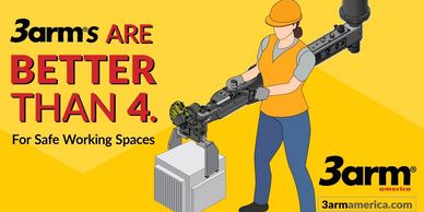 3Arm's Tool-Holding Series Arms hold tools and instruments up to 132 lbs in a weightless state for the operator. Allows increased precision with a full range of motion in lockable joints and the ability to safely absorb substantial torque and reaction forces during operation.